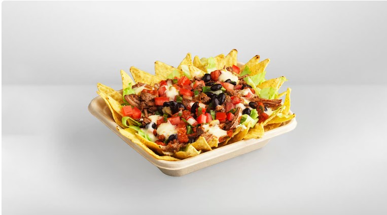 Gluten-free. corn chips topped with queso (melted cheese), black or pinto beans, pico de gallo (fresh tomato salsa), sour cream and your choice of filling and salsa